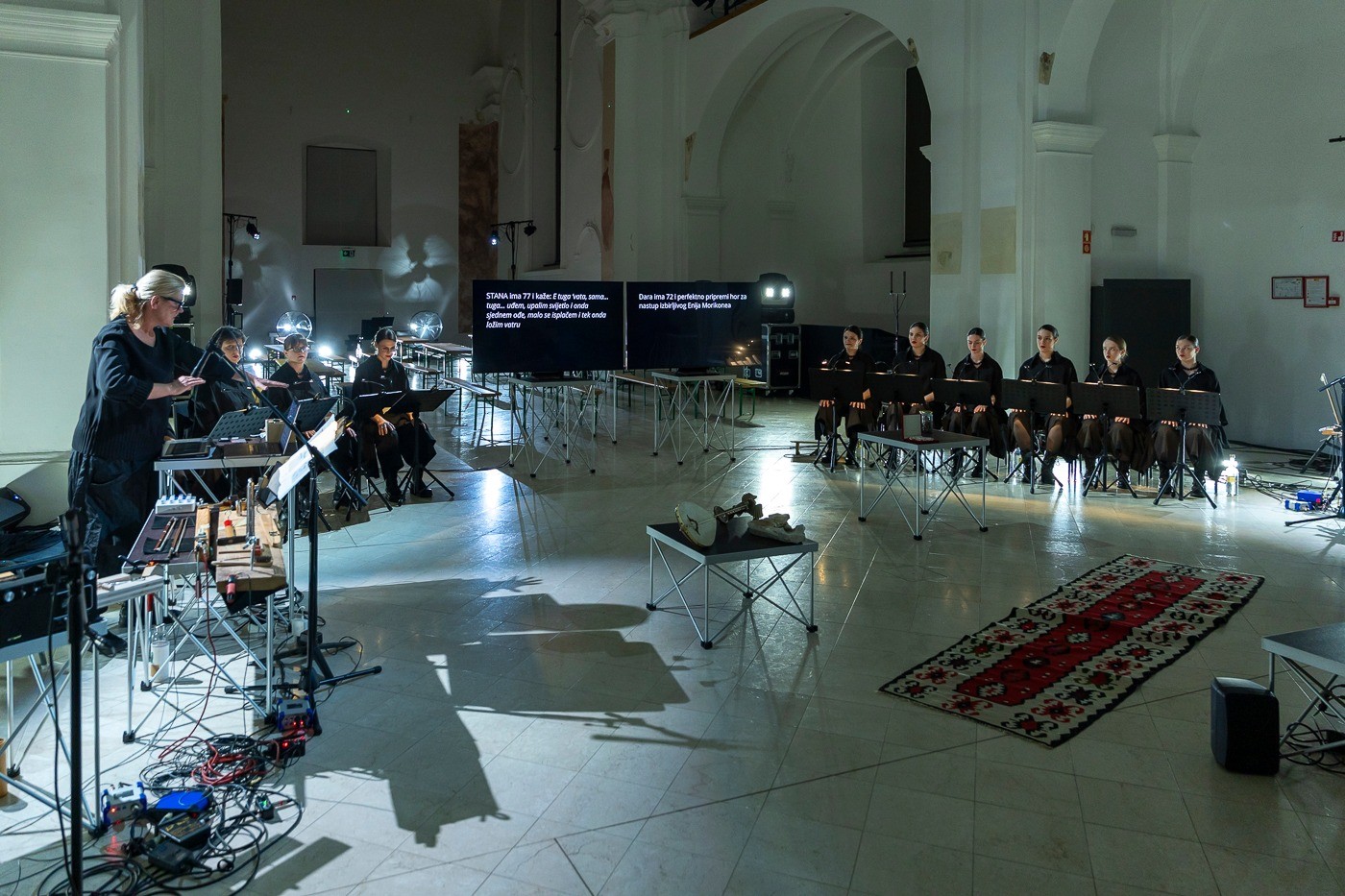 Delo ... a complex stage composition where it is possible to analyse a very real happening with all the symbolic and allusive subtones, or give yourself over to the totality of the performance and its hypnotic atmosphere. Created by the music, of course… another example of Karmina Šilec’s well thought out approach to expressive possibilities of music theatre which presents relatively complex subject matters in a way that is suggestive enough, in case this form wants to pull out of the narrow exclusive circles and continue to convince those already convinced this seems to be the only way…